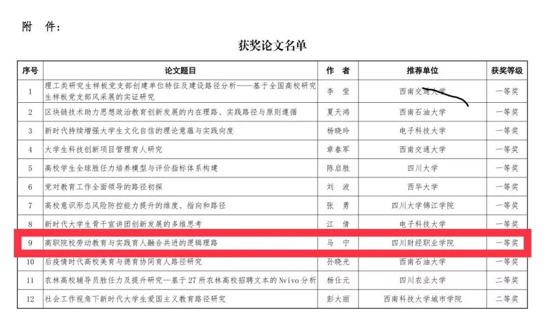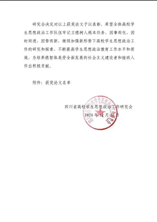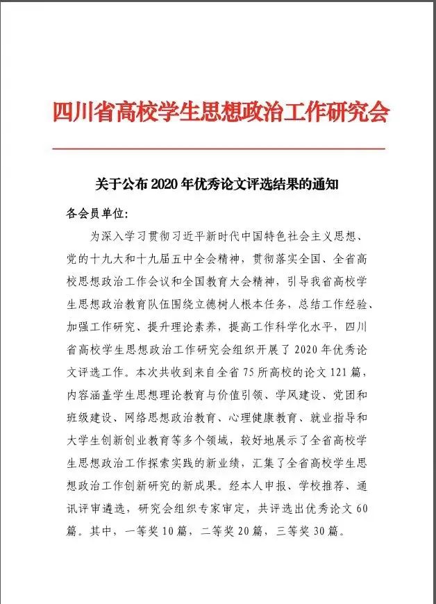 祝贺团委马宁老师荣获2020年优秀论文一等奖!