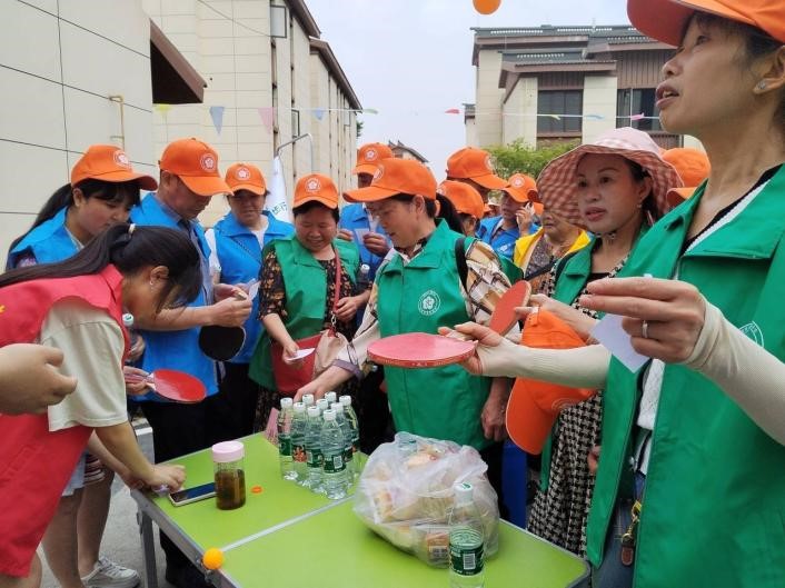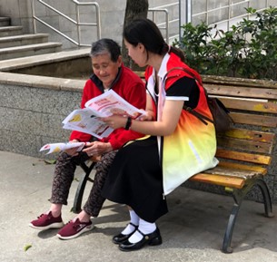 志愿者为奶奶们进行服务