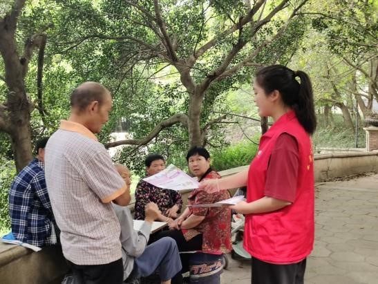 5月14日上午8:40,20名志愿者在学校集合前往蒲草村村委会。到达指定地点后,社区负责人向志愿者们讲解注意事项,发放宣传活动资料。上午9:00,党员志愿服务宣传活动正式开始。志愿者们跟随负责人前往小区,向小区群众发放宣传资料,讲解宣传内容。