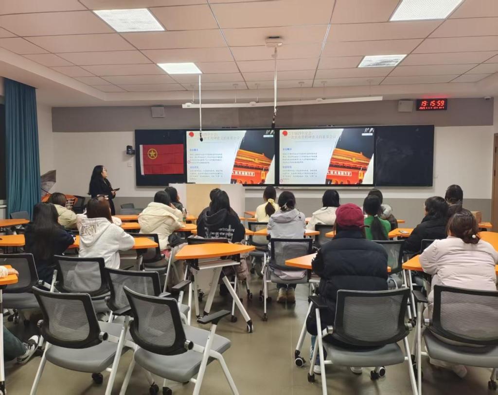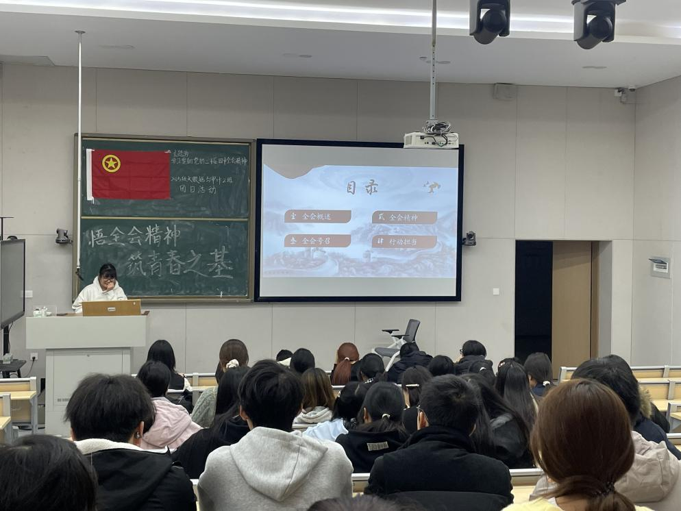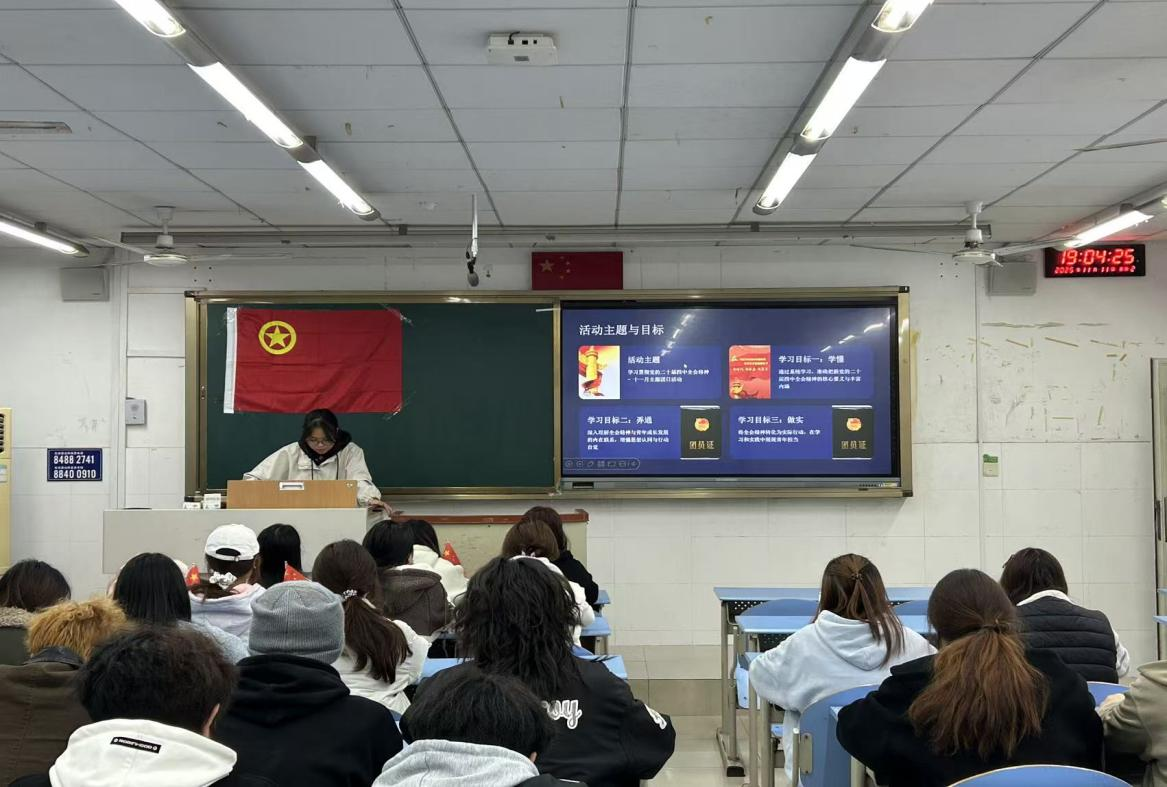会计学院团总支精心部署、统筹推进,各级团支部主题团日活动有序开展。其中,2024级财务管理1班表现尤为突出,团支书提前精心筹备,围绕"全会精神与青年成长"设计系列互动提问,引导团员青年主动思考、积极回应。活动现场氛围热烈、参与度高,通过靶向式提问、沉浸式交流,让同学们在互动中深化了对全会精神的理解,切实推动理论学习走深走实。