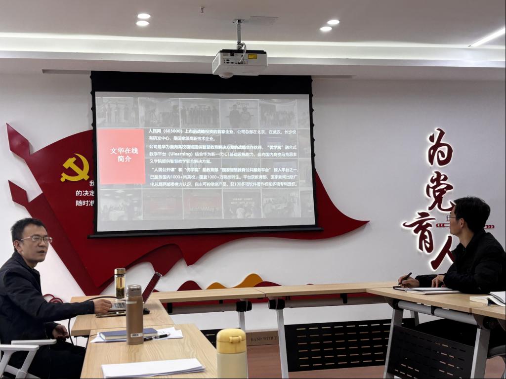 2025年12月23日,马克思主义学院特邀北京文华在线教育科技股份有限公司销售总监仇兴涛、销售经理青艳娟,为全院教师开展红色财经资源库与红色财经VR智慧云馆专题培训。本次活动旨在深化特色马院建设,推动数字化红色财经教育资源与课堂教学深度融合,提升思政课程吸引力与实效性。