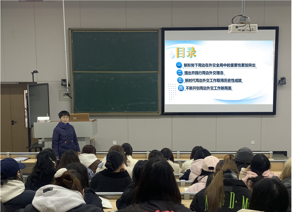 李代俊以“携手周边国家共创美好未来”为题进行授课,围绕周边外交的战略重要性展开阐述,从经济发展的“压舱石”、安全稳定的“关键点”、外交全局的“首要位”到人类命运共同体的“核心区”,系统解读了我国周边外交的战略定位。她结合详实数据与鲜活案例,介绍了“亲诚惠容”周边外交理念的丰富内涵与实践成果,从中老铁路的联通到雅万高铁的飞驰,从澜湄合作的深化到中国—中亚峰会的共识,展现了我国新时代周边外交的历史性成就。