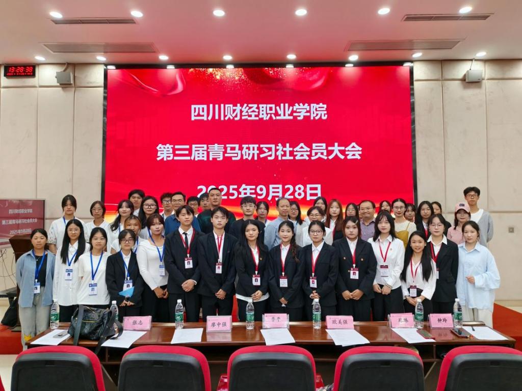 9月28日中午,四川财经职业学院第三届青马研习社会员大会在至诚楼B213教室隆重举行。马克思主义学院党总支书记李平、红色财经文化研究中心副主任欧美强、学生工作部副部长廖中强、党建与思政研究中心副主任张志,青马研习社指导教师钟玲、林琳、肖松松及社团180名会员参加了大会。