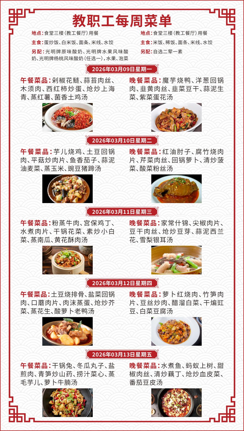 一、如遇就餐人员变化,原材料采购等原因,每日供应菜品以实际呈现为准;