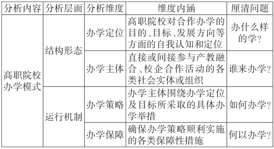 办学模式是我国教育情境中具有本土化特色的一个概念。潘懋元和邬大光教授对其给出了比较清晰和准确的定义,即办学模式是指在一定的历史条件下,以一定办学思想为指导,在办学实践中逐步形成的规范化的结构形态和运行机制。从该定义可知,办学模式的形成受到大量主客观因素的影响,要探究办学模式,首先应将其嵌置于特定的历史条件和办学思想的框架之下,再通过剖析其结构形态和运行机制来获取整体了解。结合办学模式的定义,徐国庆从整体宏观视角给出了职业教育办学模式研究的分析框架。该框架由国家、区域和院校三个分析层面和四大问题域所构成,其中院校层面是狭义上的办学模式概念,主要研究的是职业院校与产业的关系,回答的是“构建什么样的校企合作模式?”以及“如何构建和运作这种模式?”等基本问题。由于不同的职业院校办学指导思想不尽相同,所构建的模式通常也会呈现出结构形态的差异,而不同的结构形态其运行机制必然也是不一样的。