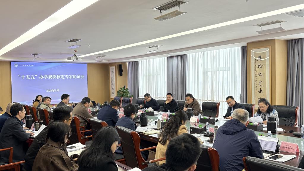 3月17日上午,学校“十五五”办学规模核定专家论证会在明德楼913会议室召开。重庆电子科技职业大学党委副书记、校长聂强,西南财经大学党委常委、副校长马永强,成都职业技术学院党委委员、副院长叶安胜三位专家应邀莅临指导,全体院领导出席,相关职能部门负责人、二级学院院长参会,会议由院长符刚主持。