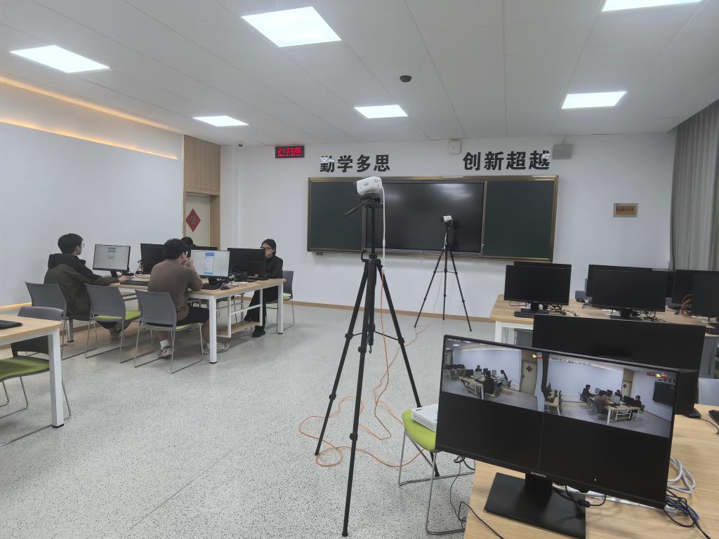 为保障竞赛团队能顺利完成在线竞赛,通识与人文教育学院、武装保卫处和信息技术中心老师们精心部署、通力协作,全力备战此次赛事,提前3天按照比赛要求进行参赛教室的筛选和布控,准备移动硬盘进行视频存储。