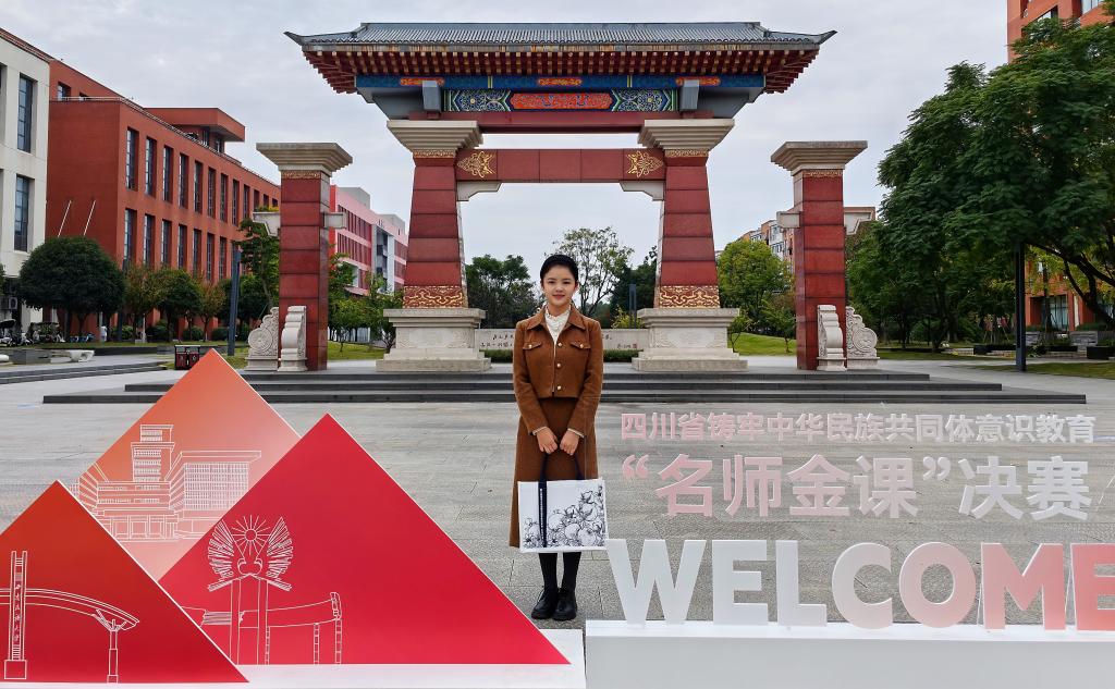 近日,2025年四川省铸牢中华民族共同体意识教育“名师金课”评选圆满落幕。经过长达半年的激烈角逐,我校教师李孜楠老师(指导教师吴峥)凭借其精心设计、倾情讲授的课程——《歌声里的“我”和“我们”》,在全省众多优秀课程中脱颖而出,荣获省级二等奖。